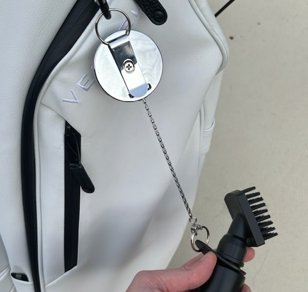 When it comes to functionality, the Grooveit brush takes the lead with its superior design. Both of these brushes connect to your bag with a clip, but the ease of use and user experience are very different. The Grooveit brush uses a magnetic system to keep the Grooveit attached to the bag. When you are ready to use your Grooveit brush, just give it a pull and the brush is in your hand – easy as that. There is no tension cord or chain to fight against while you clean your club. I did not realize how convenient the magnetic system was until I tried it; and, now that I have tried it, I cannot see myself going back to a clip-based system. However, more than once, the Grooveit has become disconnected from my bag as I slid my golf bag in and out of the back of my SUV. Such is the downfall of a magnetic system: easy to remove, but sometimes, too easy.