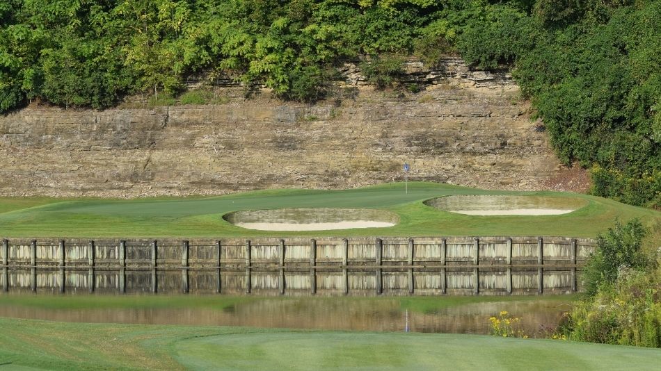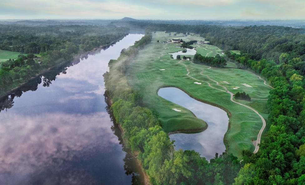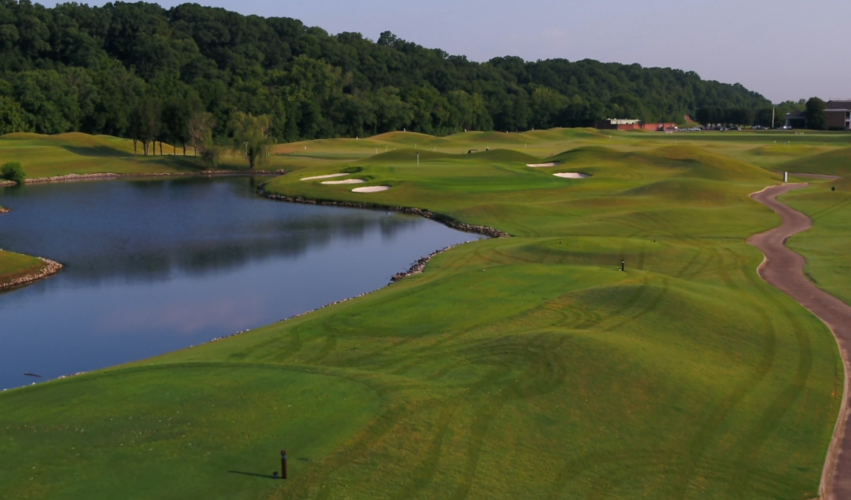 Gaylord Springs is not a traditional links course, however it does share some characteristics with traditional links course that makes this course undoubtedly American Links. It borders the Cumberland River, but never uses it as a hazard, like a traditional links course uses the ocean. Further, the landscape has had most of the trees on the internal part of the course removed, and 17 of the 18 holes on the course run either north or south. Lastly, despite being in such a busy area, Gaylord Springs is set at the foot of one of the larger hills in Nashville. The entrance to Gaylord Springs is straight downhill and the course sits in the valley between the raised ridge and the river, providing a very windy environment with no trees, and the river’s wind bouncing off the ridge, like ingredients in a bowl. The wind, the openness, and the frontage of water make this an American Links. However, unlike a traditional links course, there is a bit of internal water to navigate, as water comes into play on about 10 of the holes, negating the ability to truly play the ball along the ground the entire way.