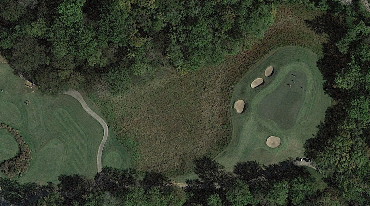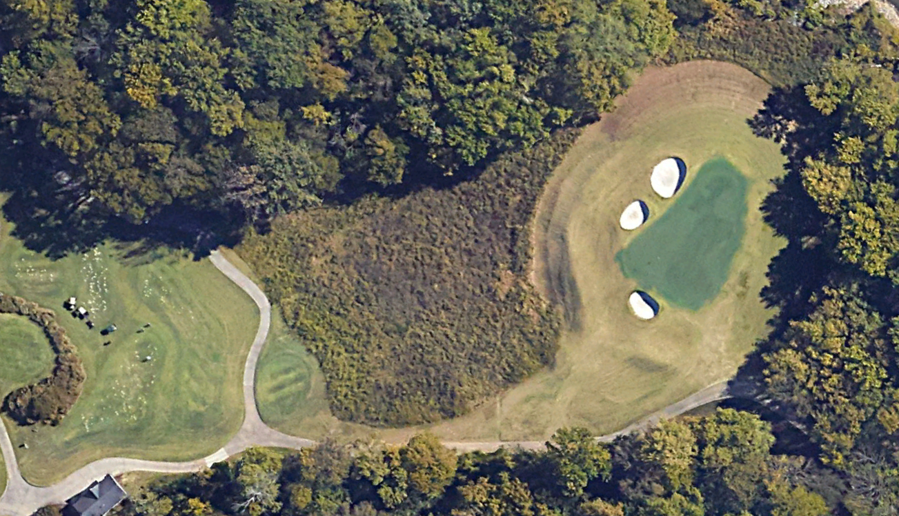 Once in the fairway, the approach will likely be with a mid-iron to a slightly elevated green, protected by the bunker and wrap around lake on the left and behind the green, as well as the dense tree-line to the right. This may be the hole and the shot best served by the aforementioned tree removal along the shoreline of the river. This shot would provide a magnificent view of the river without the large trees on the right.