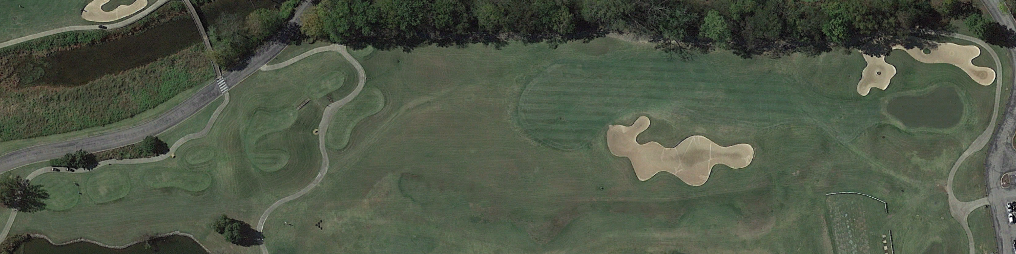 The second hole might be the hardest hole on the course. The longer par-4 runs the same direction as the first, and features a split fairway, with the first half of the fairway being slightly elevated compared to the second half. The hole is quite difficult due to the tee shot. The large tree that sits some 90-yards in front of the back tee chokes the gap in the trees to just 18-yards wide, and in the landing area of the fairway, the short grass thins to just 28 yards between the rough and the deep bunkers on the right. These bunkers on the right may be the worst of the fairway bunkers on the course, due to the length of the next shot, as the steep lips can block any iron shot from a club longer than around a 7-iron. Even the best drive will leave a mid-iron into a relatively long, narrow green that has significant sloping from back-to-front, and that features steep fall-offs into grass bunkers on either side.